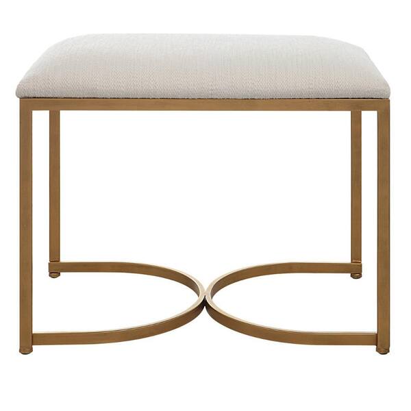 Off White Metal and Wood Accent Stool with Cushioned Seat and Half Circle Design