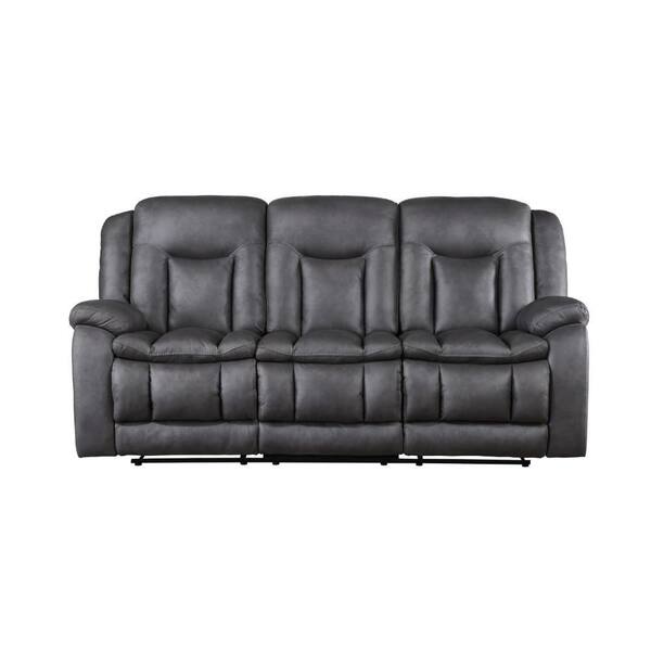 Olaf Gray Faux Leather Glider Recliner Dual Manual Sofa