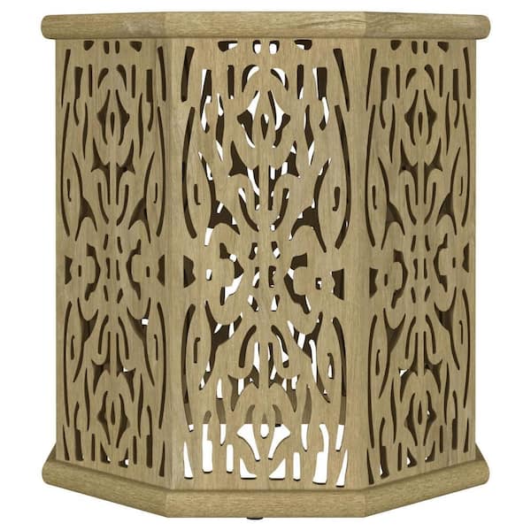 Ores 17.5 in. Brown Octagonal Mango Wood Side Table with Intricate Carvings