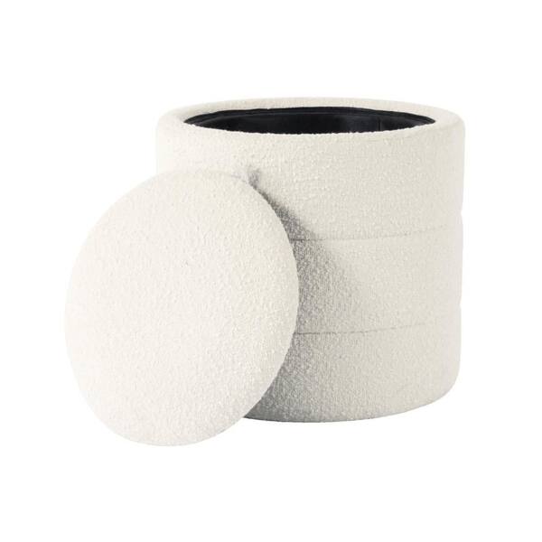 Pero White Fabric Round Storage Ottoman