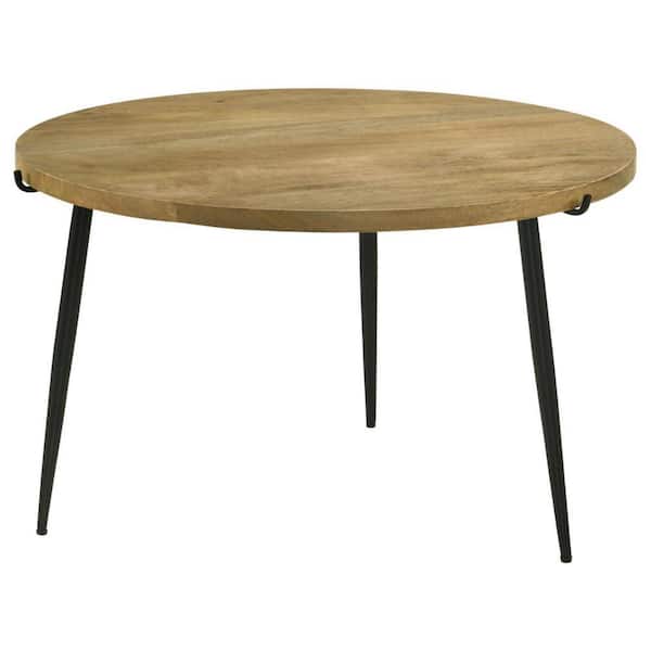 Pia 30 in. Brown and Black Round Mango Wood Top Coffee Table with Iron Tripod Legs