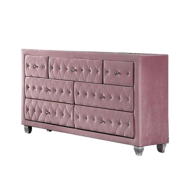 Pink and Silver 7-Drawers 58.5 in. Dresser Without Mirror