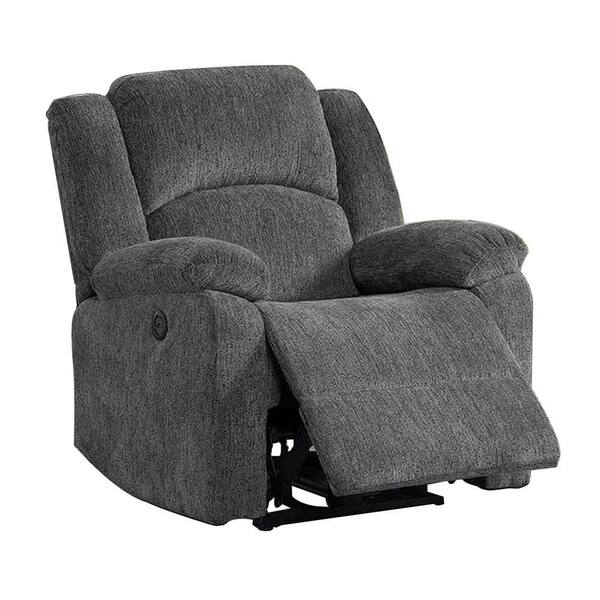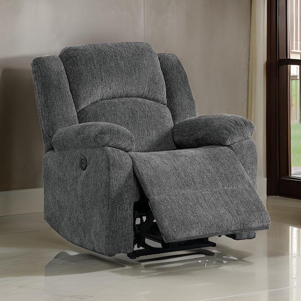 Plush Cushioned Gray Chenille Fabric Power Recliner with USB Port
