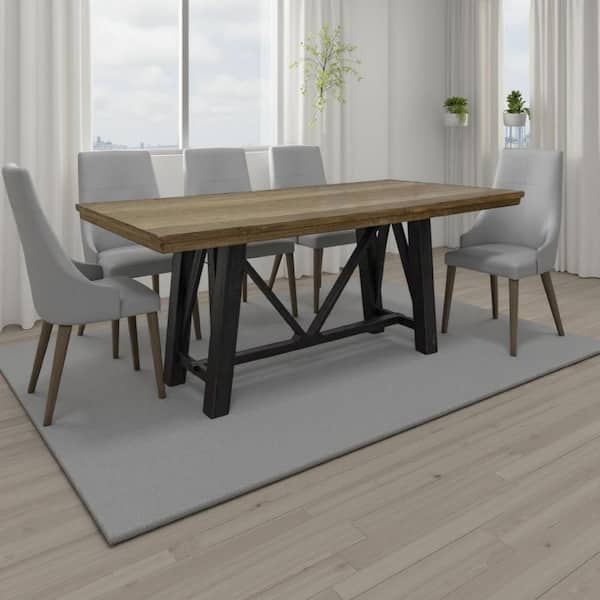 Pola Gray and Brown Wood 39.25 in. Double Pedestal Dining Table Seats 6