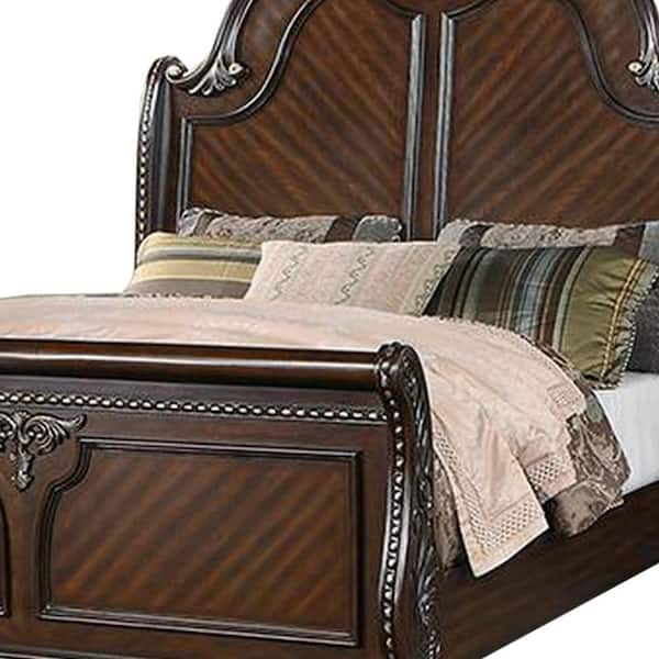 Qoz Brown Wood Frame Queen Size Platform Bed
