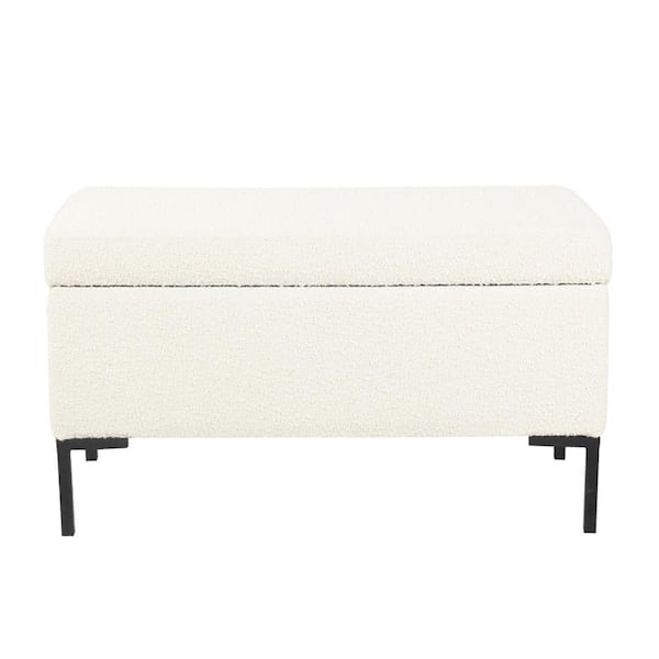 Ray Cream White and Black Fabric Rectangle Storage Ottoman