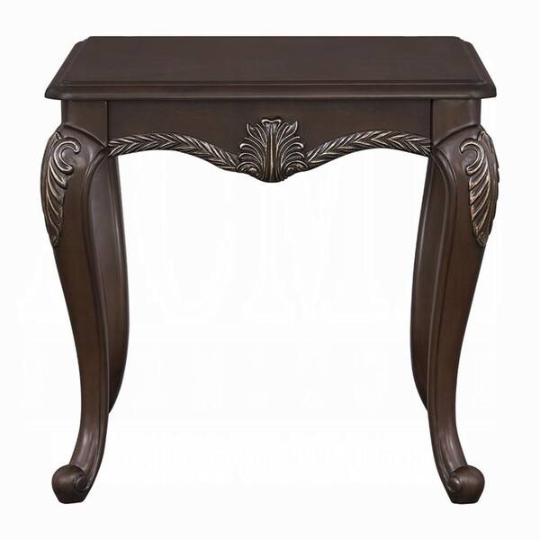 Reese 26 in. Cherry Brown Rectangular Wood Side Table with European Carved
