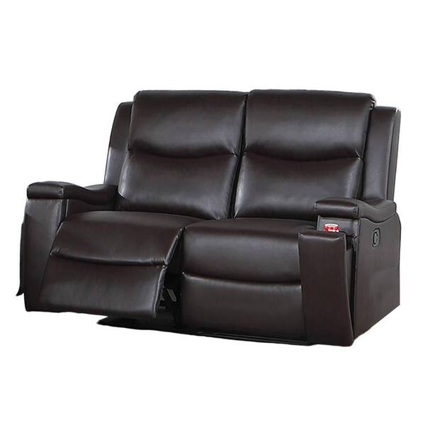 Renna Espresso Brown Faux Leather Glider Recliner Manual Loveseat with Cup Holders
