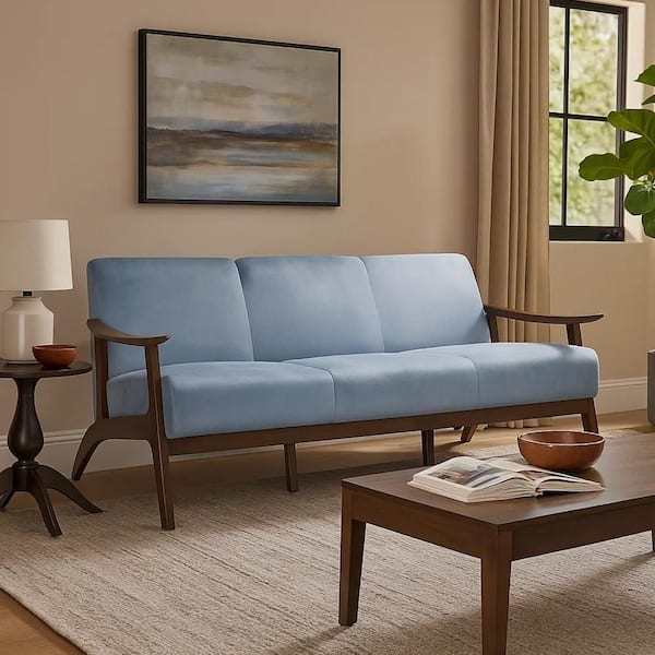 Rica 31.5 in. Slope Arm Velvet Rectangle Sofa in Blue Gray and Brown
