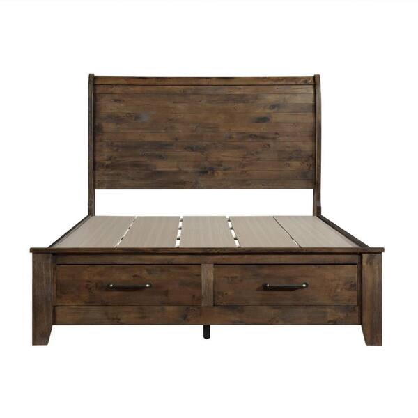 Rick Brown and Black Wood Frame Queen Size Platform Bed with 2 Footboard