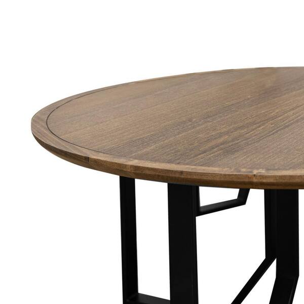 Rina 35.5 in. Brown and Black Round Wood Coffee Table with Black Metal
