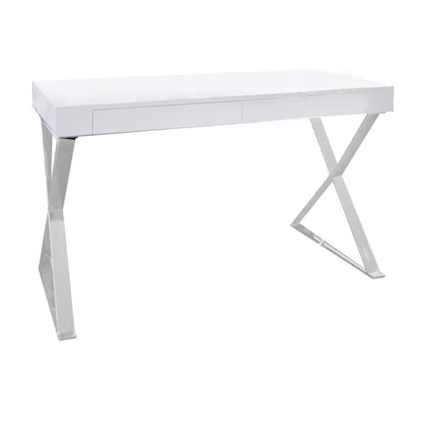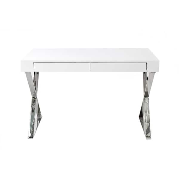 Rix 24 in. Rectangular White Wood 2-Drawer Writing Desk with X Polished Steel Legs