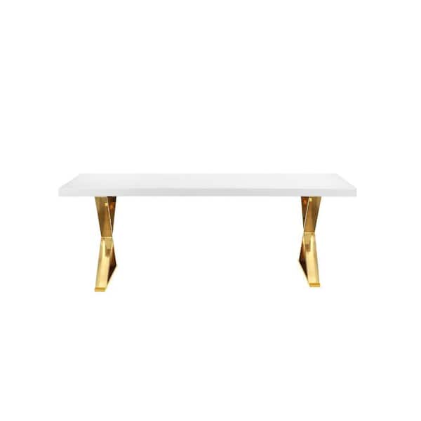 Rix White and Gold Wood 39 in. Sled Dining Table Seats 10