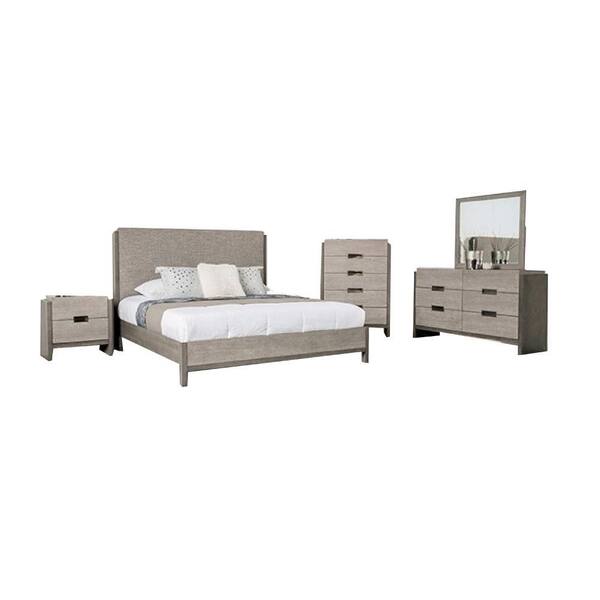Rizvi 5-Piece Stone Gray and Bronze Queen Engineered Wood Bedroom Set