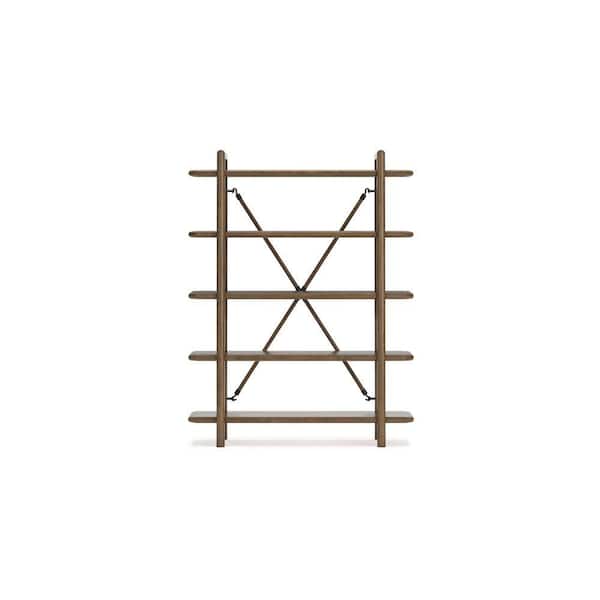 Rohan 71 in. Tall Oak Brown Wood 5-Shelf Standard Bookcase with X Cross