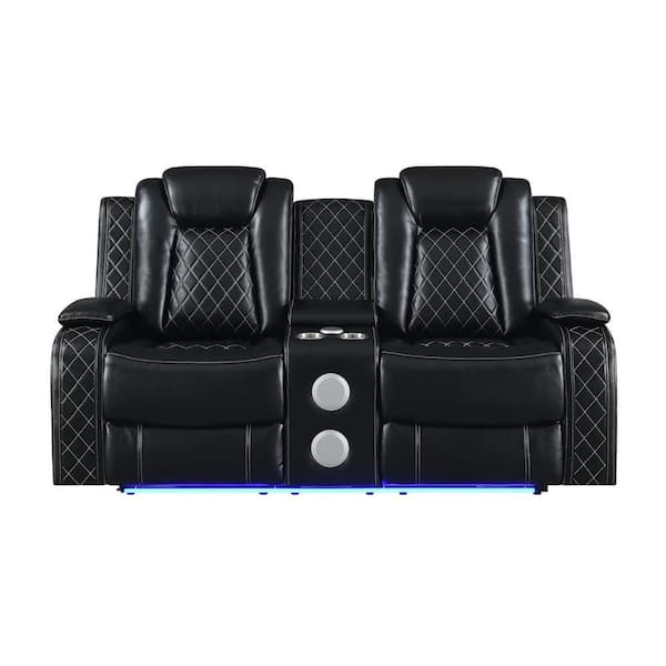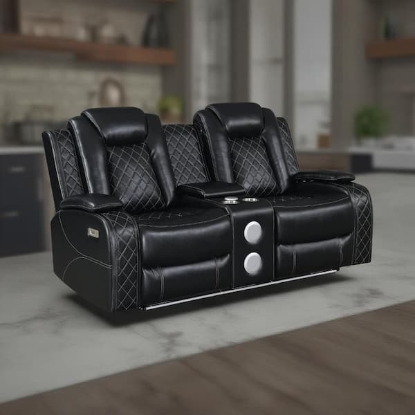 Ronie Black and White Faux Leather Glider Dual Power Recliner Loveseat with USB Port
