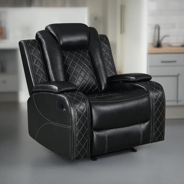 Ronie Black and White Faux Leather Glider Power Recliner Chair with USB Port