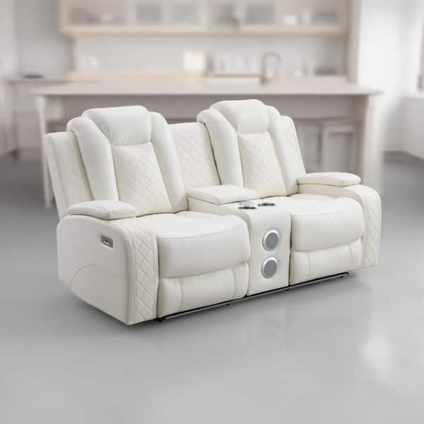 Ronie White Faux Leather Glider Recliner Dual Manual Sofa with USB Port