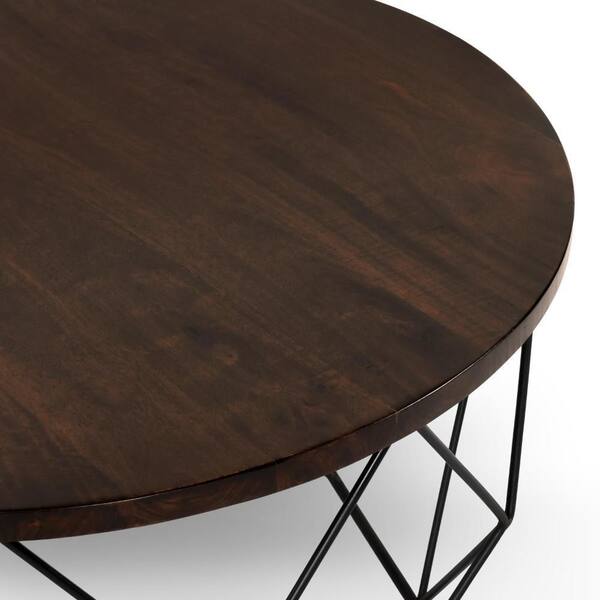 Rorie 32 in. Brown and Black Round Wood Coffee Table with Open Base
