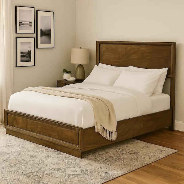 Rouk Brown Wood Frame Queen Panel Bed with Transitional Panel Design