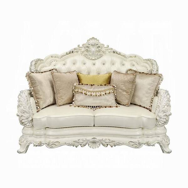 Rox 42 in. White Faux Leather 2-Seater Loveseat with 7-Accent Pillows and Tufted