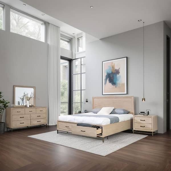 Rozie 5-Piece Light Oak Brown and Gold Queen Wood Bedroom Set