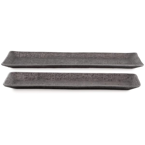 Rumi Pewter Gray Rectangular Cast Aluminium Decorative Tray (Set of 2)