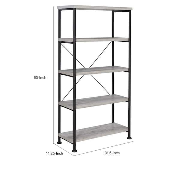 Rustically Designed 63 in. Black Wood 4-shelf Standard Bookcase with Open Back