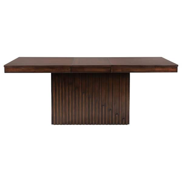 Ryn Brown Wood Rectangle 41.75 in. Pedestal Base Dining Table Seats 6