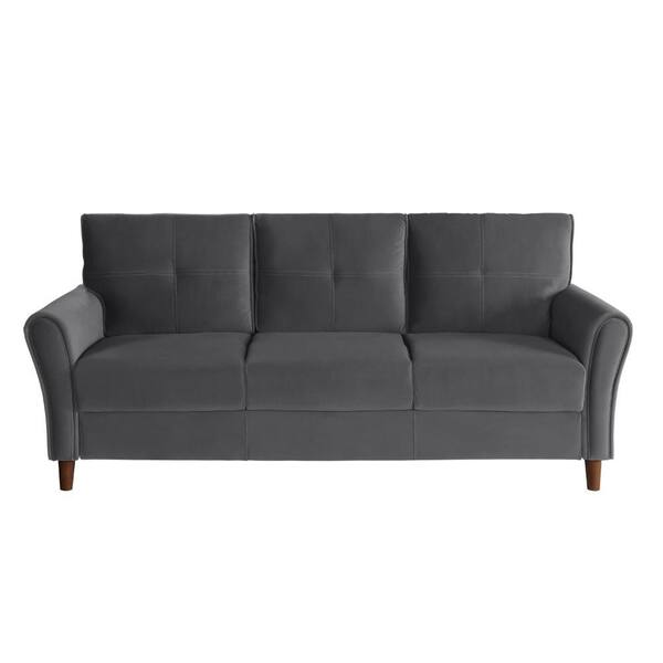Sarah 33 in. Round Arm Velvet Rectangle Reversible Sofa in Gray and Brown