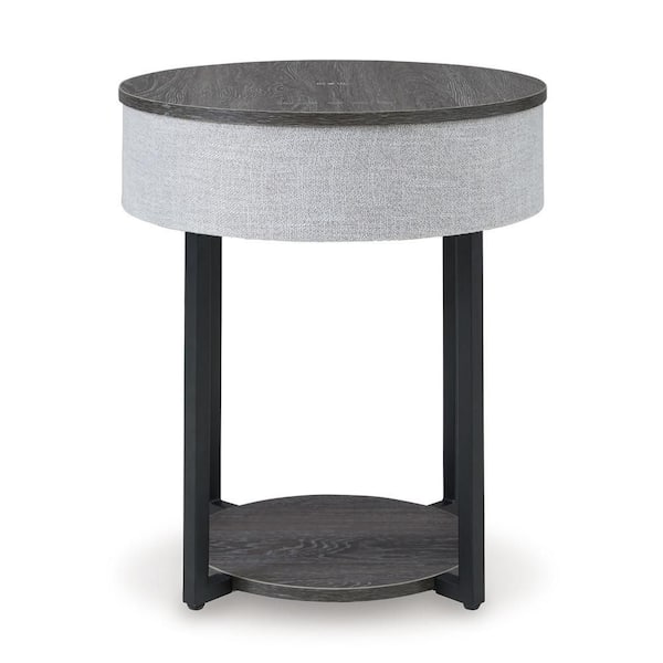 Seme 18 in. Black and Gray Round Wooden End Table with Wireless Charging and Built In Speakers