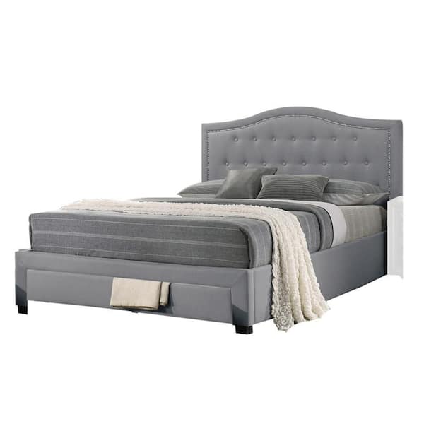 Sey California Gray and Black Poplar Wood Frame King Platform Bed with Upholstered Headboard