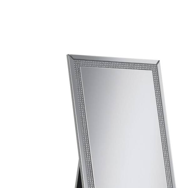 Silver 23.5 in. W x 63 in. H Rectangle Metal Cheval Mirror with Rhinestone Inlay and Easel Back