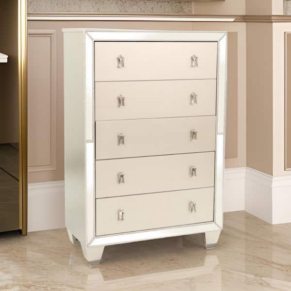Silver 5-Drawer 38 in. Wide Dresser Without Mirror