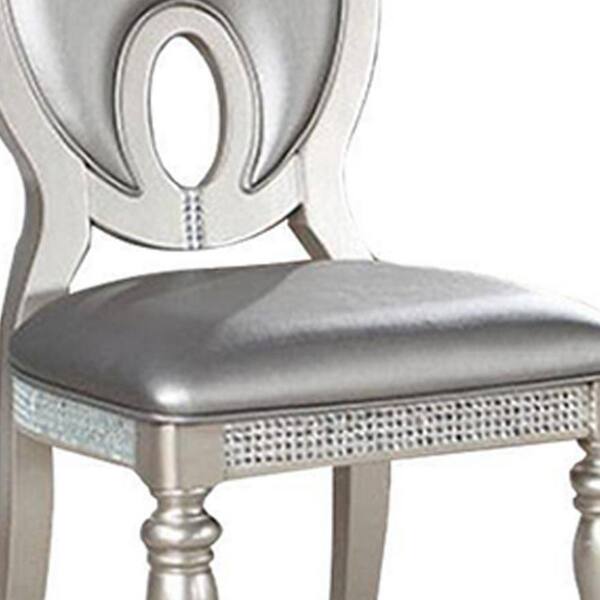 Silver Cotton Side Chair with Keyhole Back Chair Design (Set of 2)