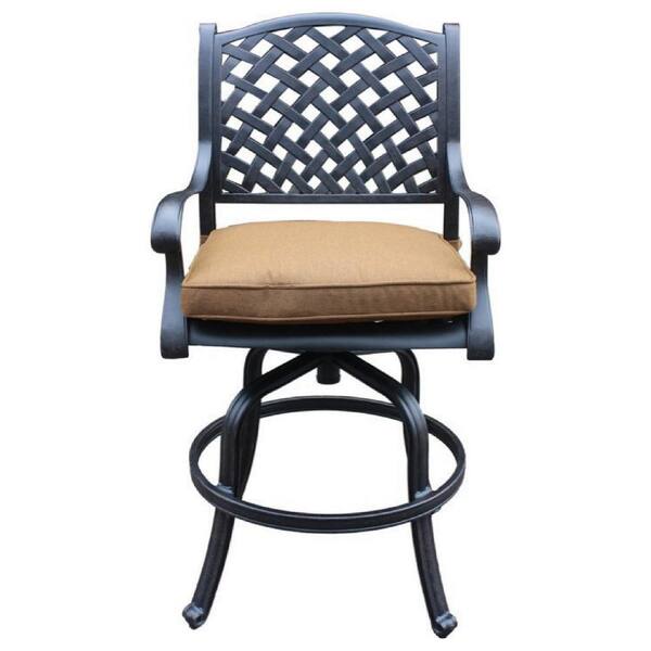 Swivel Metal Outdoor Bar Stool with Brown Cushion (Set of 2)