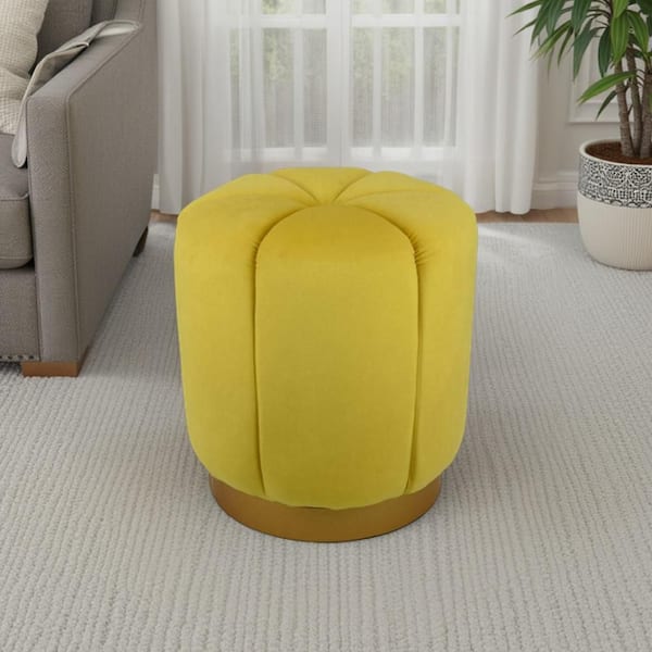 Sylvie Yellow and Gold Velvet Round Accent Ottoman