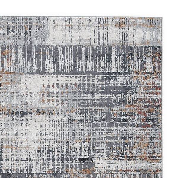 Tenr Gray, Ivory and Brown 5 ft. x 7 ft. Geometric Area Rug
