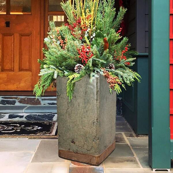 Textured Gray and Brown Ceramic Planter in Square Shape