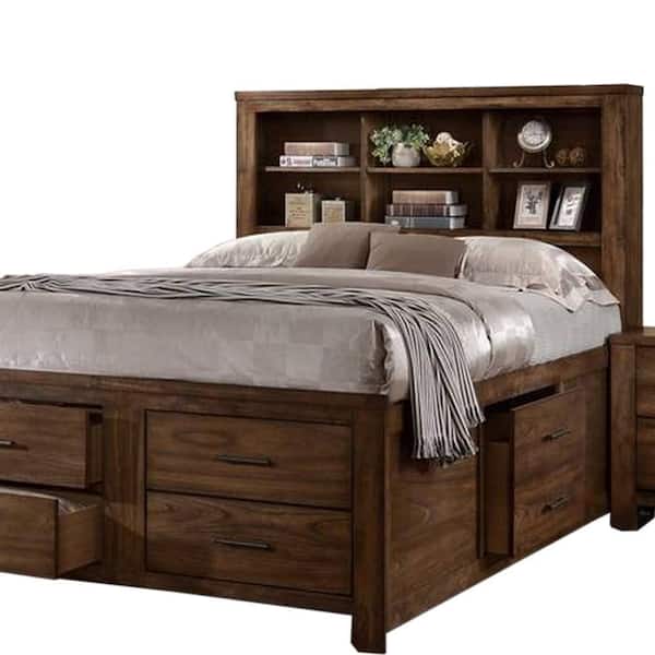 Tiva Oak Brown Wood Frame Queen Size Platform Bed with 6-Drawers