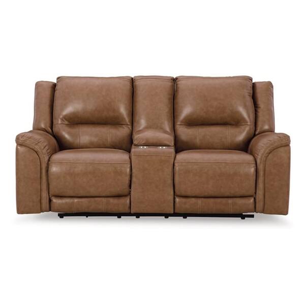 Trasi Caramel Brown Faux Leather Glider Power Recliner Chair with USB Port