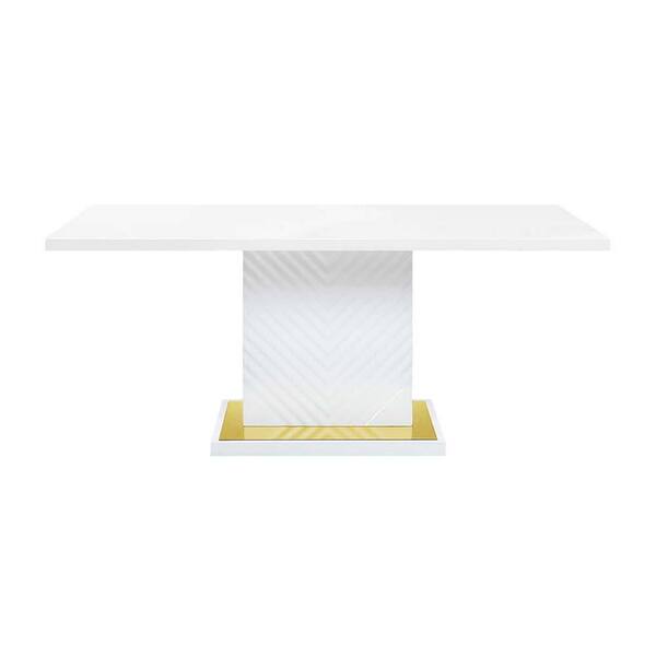 Tyra White and Gold Wood Rectangle 35 in. Pedestal Base Dining Table Seats 6