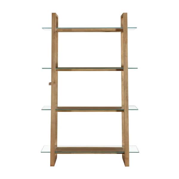 Uvi 16 in. Tall Bisque Brown Wood and Glass 4-Shelf Standard Bookcase