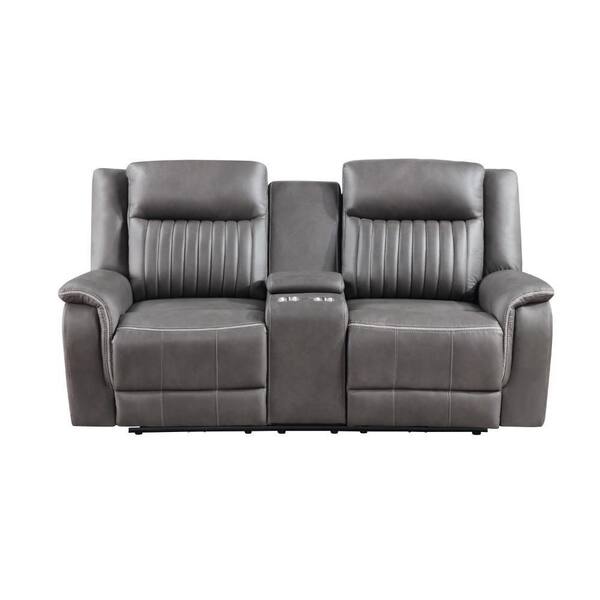 Viann Gray Polyester Glider Recliner Dual Manual Sofa with Cup Holders