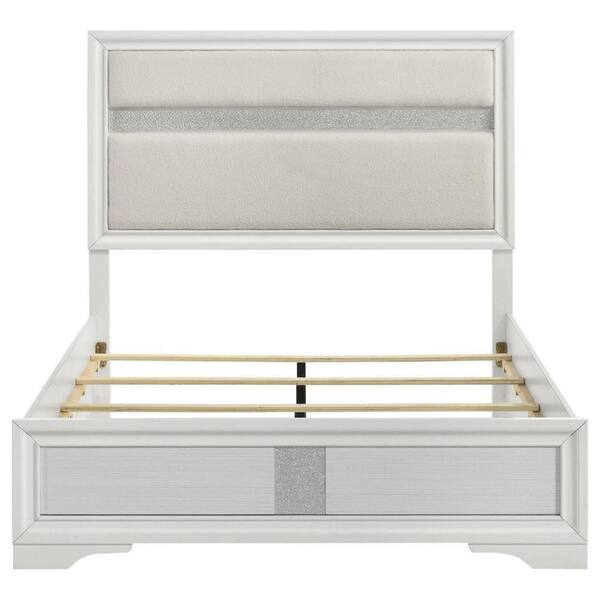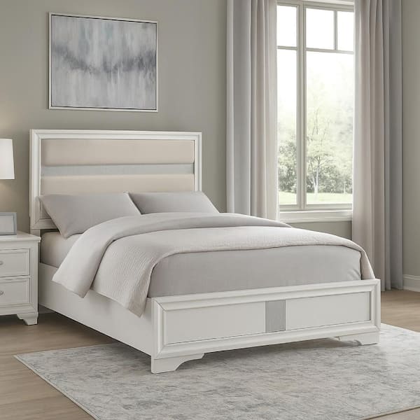 Vino White Hardwood Frame Full Platform Bed with Panel Headboard