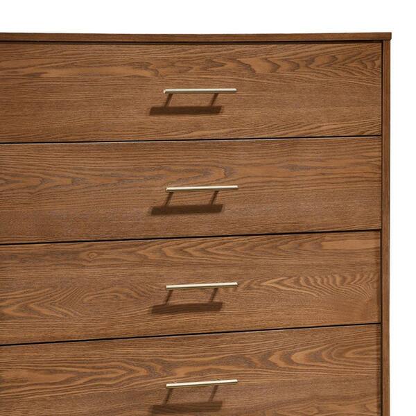 Walnut Brown and Nickel 5-Drawers 33.5 in. Dresser Without Mirror