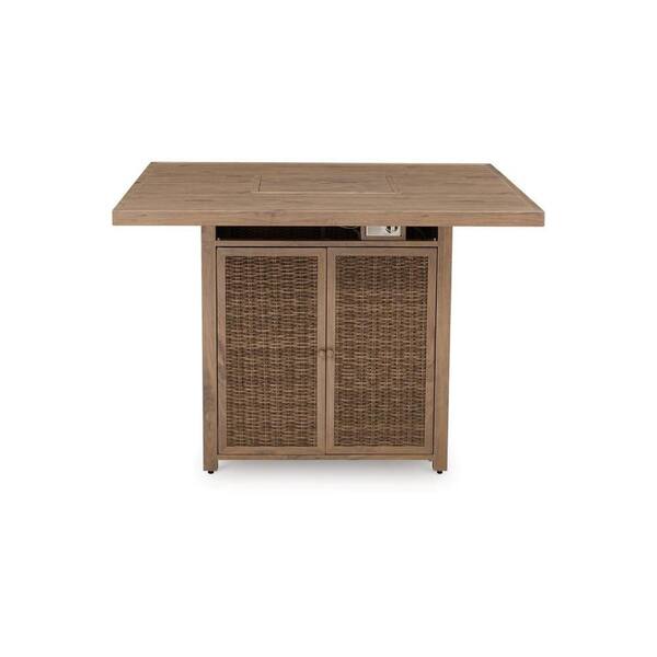 Walo Brown Square Rattan Wicker Outdoor Fire Pit Bar Table