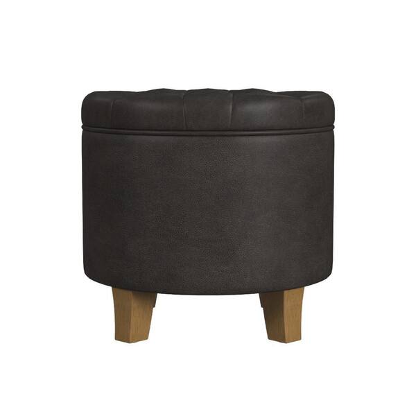Wes Black and Honey Oak Brown Faux Leather Round Storage Ottoman