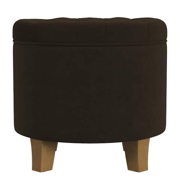 Wes Chocolate Brown and Honey Oak Brown Velvet Round Storage Ottoman