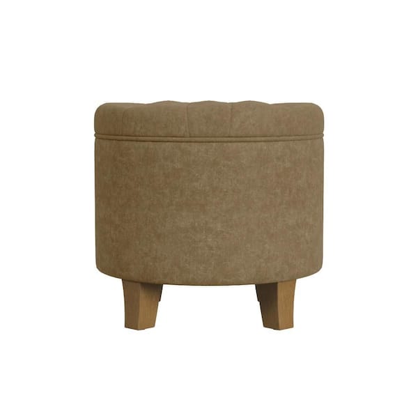 Wes Mocha Brown and Honey Oak Brown Velvet Round Storage Ottoman